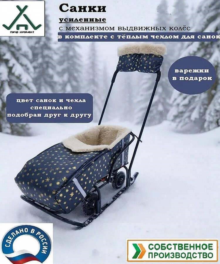 Санки коляска усиленные "Богатырь" - санки с выдвижными колесами
